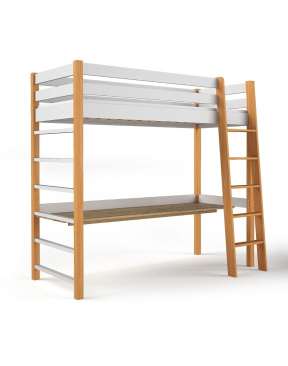 Dřevěná patrová postel s psacím stolem NIKO je skvělou volbou pro malé prostory, která spojuje funkčnost a design.