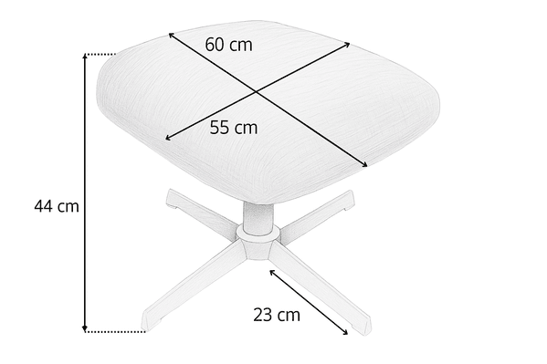 Černá kovová podnož ve tvaru kříže dodává podnožce vizuální lehkost – skvěle se hodí jak do obývacího pokoje, tak do relaxační zóny v kanceláři nebo pracovně.