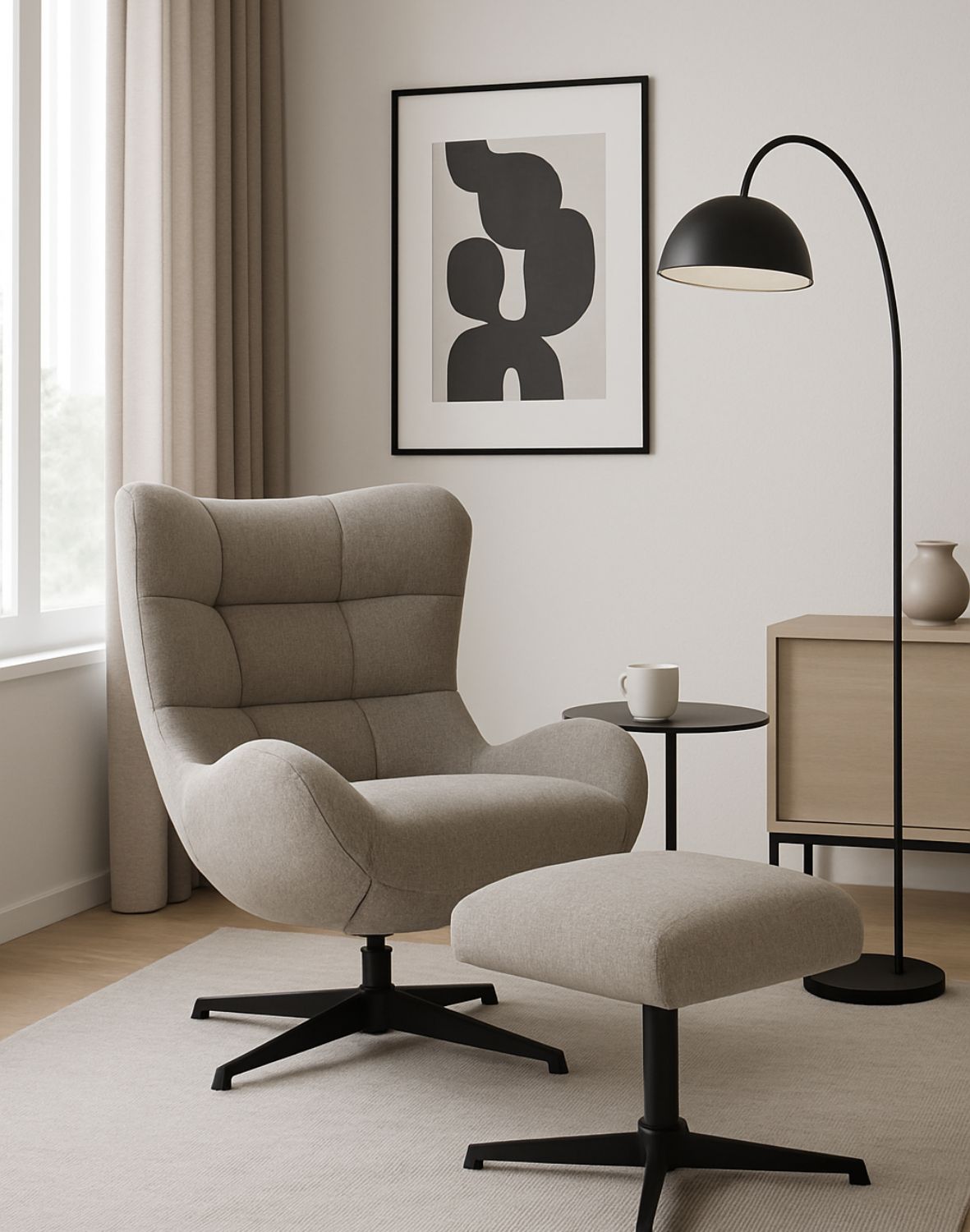 Podnožka Uni není jen stylovým doplňkem ke křeslu, ale především praktickou oporou pro nohy. Společně tvoří kompaktní a mimořádně pohodlnou relaxační sestavu, která podporuje odpočinek a regeneraci po náročném dni.