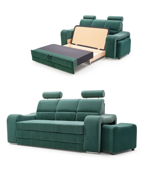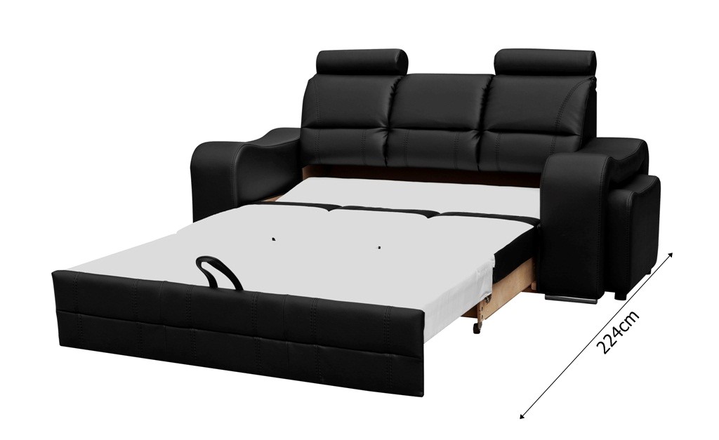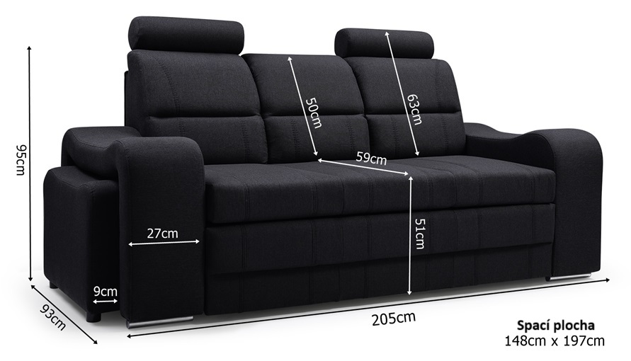 Rozkládací pohovka s opěrkami hlavy – díky rozměrům 197x148 cm poskytuje pohodlné místo k odpočinku jak pro každodenní použití, tak pro hosty.