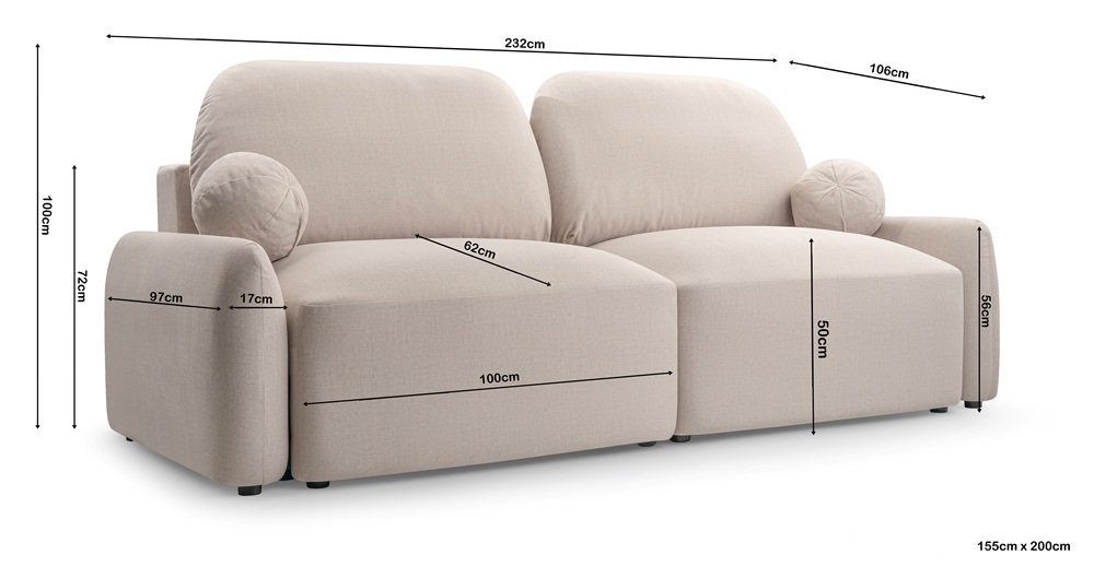 Integrovaná spací funkce s pohodlným rozkládacím systémem typu DL nabízí komfortní spaní každou noc – plocha na spaní má rozměr 155 × 200 cm.