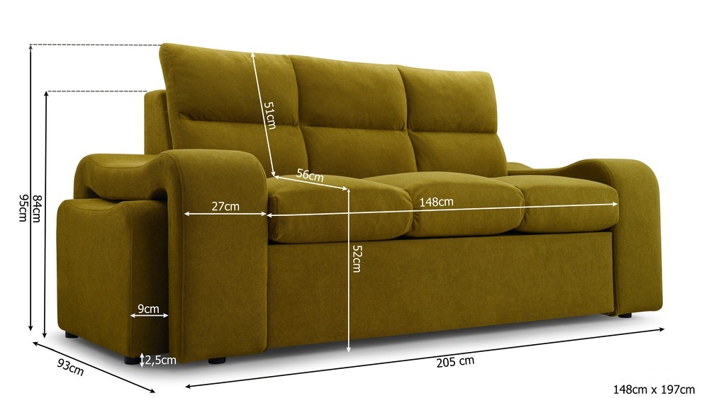 Třímístná rozkládací pohovka Wenus od evropského výrobce s funkcí spaní je ideální pro každodenní použití nebo jako doplňkové lůžko pro hosty.
