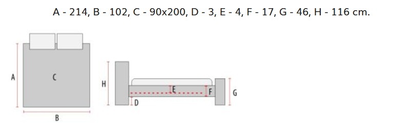 Rozměr matrace: 90×200 cm, přistýlka: max. 90×195×18 cm.