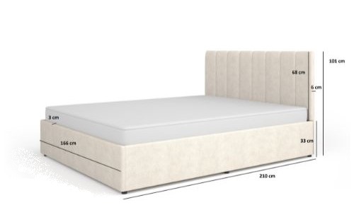Elegantní, čalouněný model s moderním čelem, které dodává styl a sofistikovanost a zároveň se stává výrazným dekorativním prvkem každého interiéru.