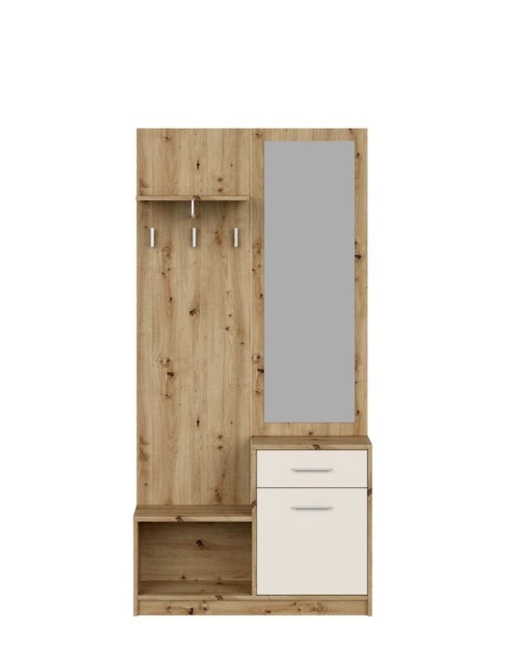 Provedení v dekoru dub artisan/Kašmír dodává vstupnímu prostoru přirozený charakter a teplo. Díky univerzálnímu barevnému ladění nábytek snadno sladíte s různými styly interiéru – od moderního přes minimalistický až po klasický.