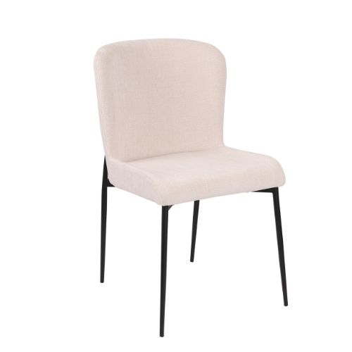 Stylová jídelní židle Willow v kombinaci příjemné látky v módních barvách (béžová a šedá) a černých kovových nohou dodává interiéru eleganci. Ideální volba pro váš domov. Objevte ji i vy!