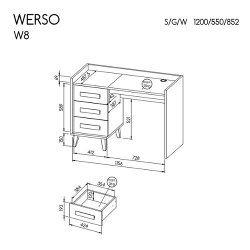 Psací stůl Werso W8 se třemi prostornými zásuvkami vnese do interiéru designový akcent.