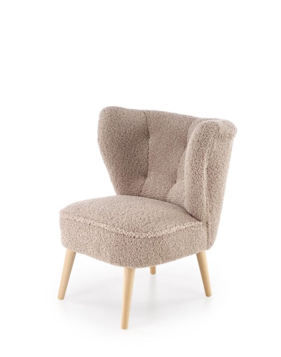 Stabilitu křesla zajišťují dřevěné nohy v přírodním odstínu, které dodávají celku lehkost a krásně ladí s teplou barvou čalounění.
