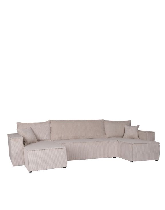 Tato pohodlná pohovka s funkcí spaní je čalouněná manšestrovou látkou Poso v moderních odstínech béžové nebo šedé.
