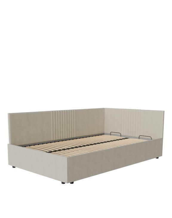 Rohové lůžko Lena s úložným prostorem je moderní volbou do studentského pokoje, pokoje pro hosty nebo menší ložnice.