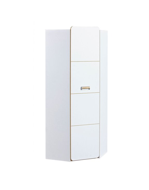 Rohová šatní skříň Lorento L14 je praktickým a stylovým řešením, které umožňuje maximálně využít prostor v místnosti, a to i v těžko přístupných rozích. Její moderní tvar a jednoduchá linie čelních ploch zajišťují, že skříň skvěle zapadne do různých stylů interiéru – od světlých minimalistických až po útulné a barevné studentské pokoje.
