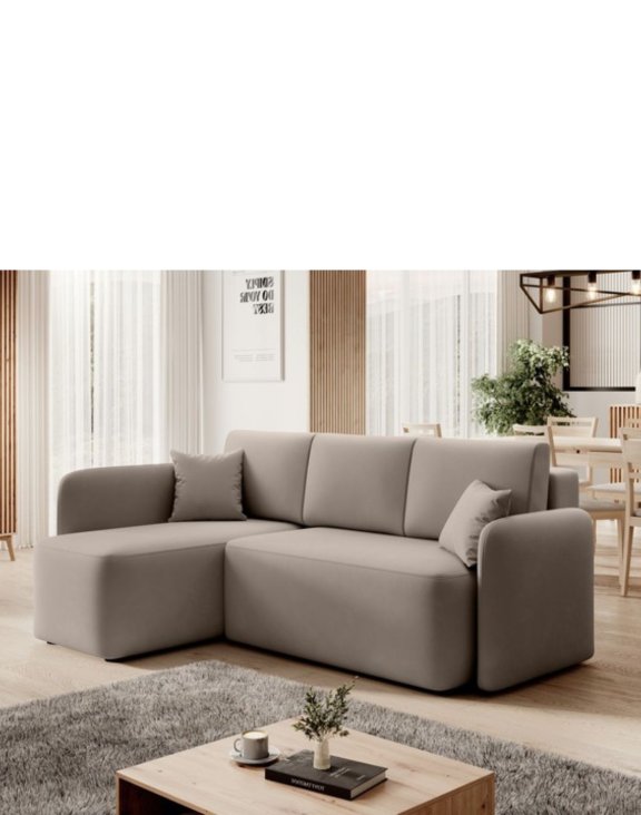 Rohová sedačka Hadson je ideální volbou pro ty, kdo žijí v menších prostorách. Její kompaktní konstrukce zahrnuje jak funkci rozkládání na spaní, tak praktický úložný prostor na ložní prádlo (mechanismus DL).