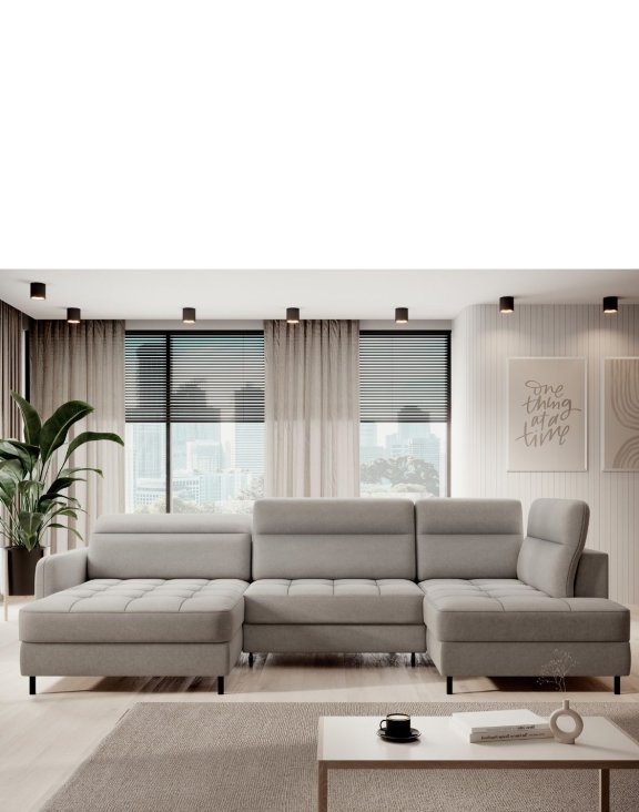 Rohová rozkládací sedací souprava ve tvaru U Berrto značky Eltap s moderními polohovatelnými a nastavitelnými opěrkami hlavy poskytuje maximální pohodlí a komfort při používání.