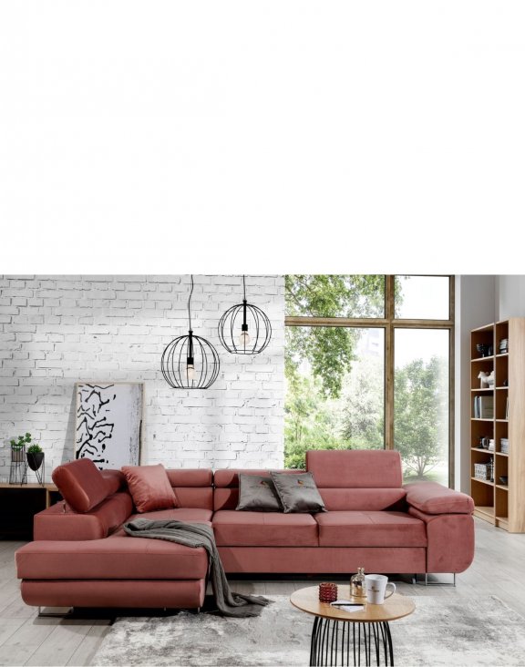 Sedací souprava má tvar písmene L. Postranní sedák lze umístit na pravou nebo levou stranu. Výběr provádíte přímo v košíku.