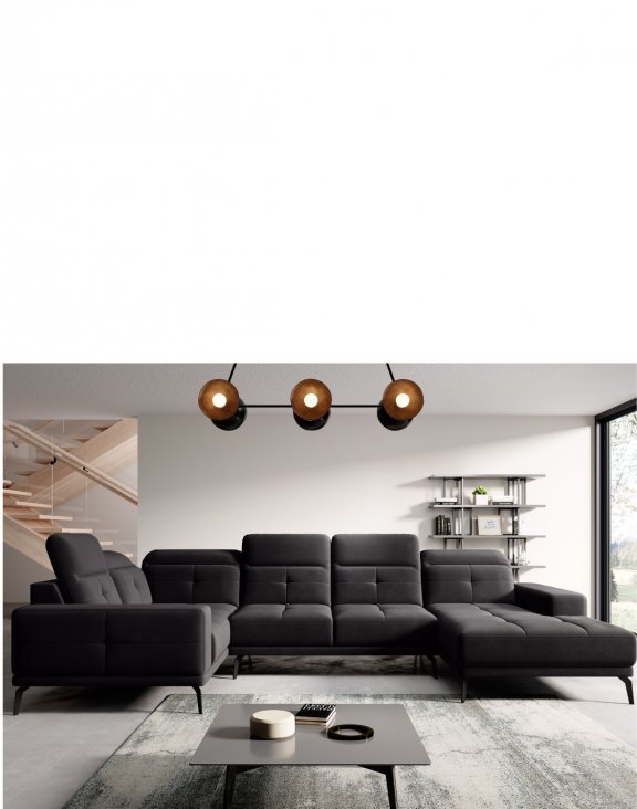 Rohová sedačka Neviro s moderním, posuvným opěradlem a nastavitelnými opěrkami hlavy poskytuje maximální pohodlí a komfort při používání.
