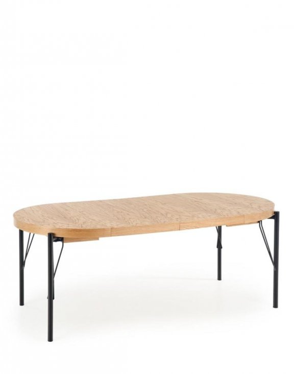 Rozkládací deska stolu je vyrobena z MDF desky s přírodní dubovou dýhou, která dokonale zdůrazňuje strukturu přírodního dřeva.