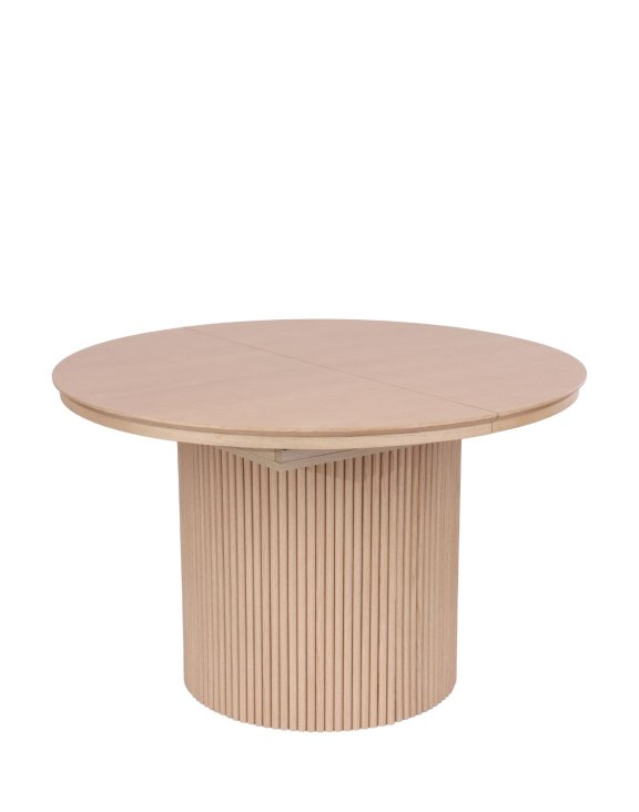 Jeho kulatá deska o průměru 120 cm se dá jednoduše rozšířit na 160 cm, díky čemuž se stůl skvěle hodí jak pro každodenní používání, tak pro setkání ve větším počtu osob.