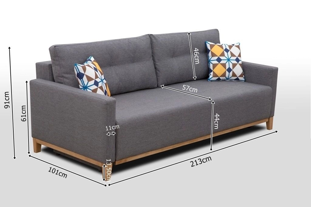Šířka pohovky je 213 cm a plocha na spaní po rozložení činí 191x140 cm, což poskytuje pohodlné místo k odpočinku pro dvě osoby.