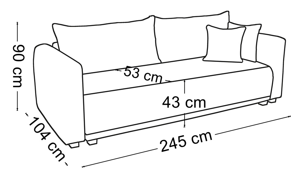Rozměry: Šířka 245 cm, výška 95 cm, hloubka 99 cm.