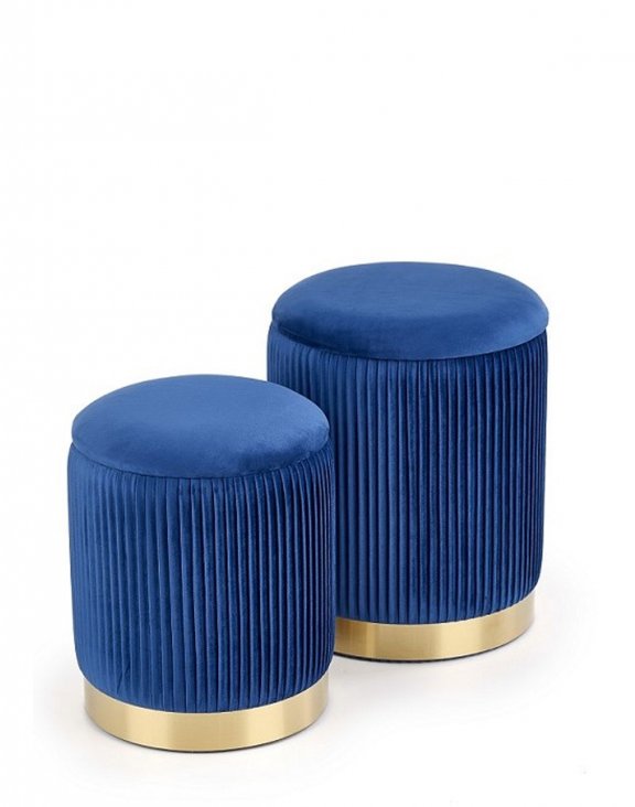 Oba taburety jsou ve tvaru válce, který je zdoben skládanými stranami.