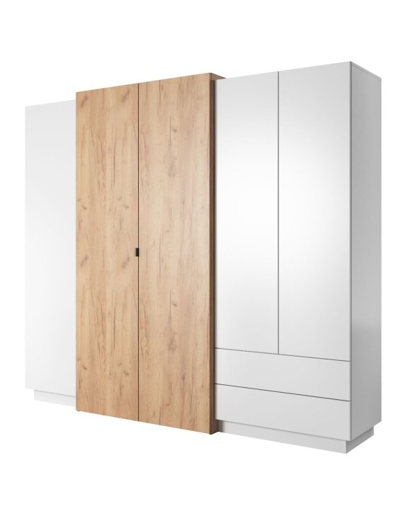 Velká bílá pětidveřová šatní skříň se zásuvkami a zrcadlem 3D H