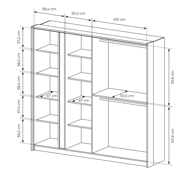 Šatní skříň se zrcadlem a LED osvětlením Dast I 220, béžová