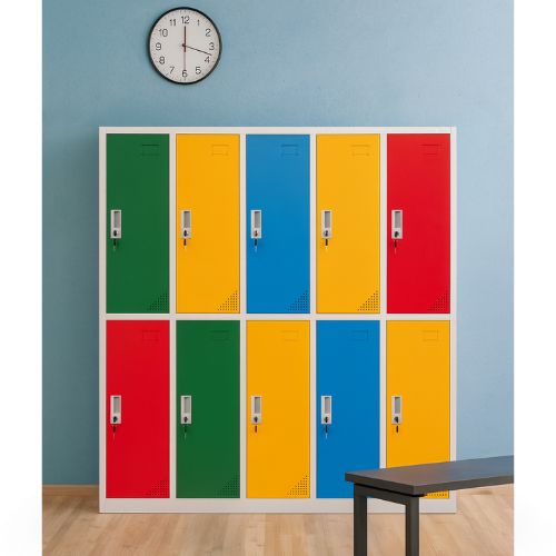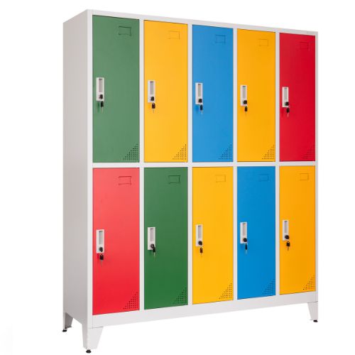 Na čelních plochách dveří se nacházejí vizitkáře, díky nimž lze snadno označit jednotlivé přihrádky – například jménem uživatele, číslem zaměstnance nebo žáka. To výrazně usnadňuje organizaci a identifikaci.