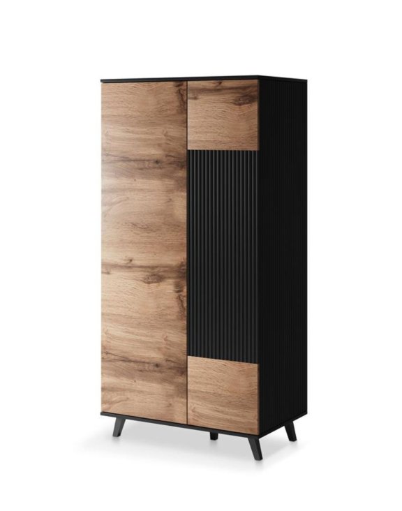 Skříň Random S-1 od značky Halmar je nadčasový kus nábytku, který se vyznačuje dřevem v odstínu dub wotan v kombinaci s klasickou černou.