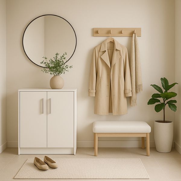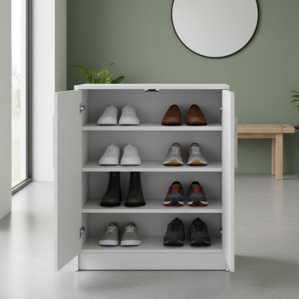 Skříňka na boty 04 v bílé barvě je kombinací moderního designu a funkčnosti, která se dokonale hodí do každého interiéru – od předsíně až po šatnu.