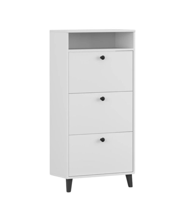 Tri výklopné priehradky sú vybavené dvojitými radmi, čo umožňuje praktické uloženie mnohých párov topánok – usporiadaných a ľahko dostupných.
