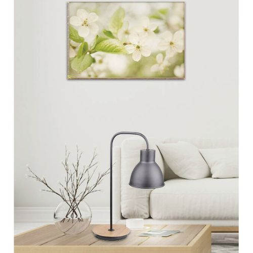 Lampa vyniká svou konstrukcí a dřevěný prvek základny dodává lampě na útulnosti.