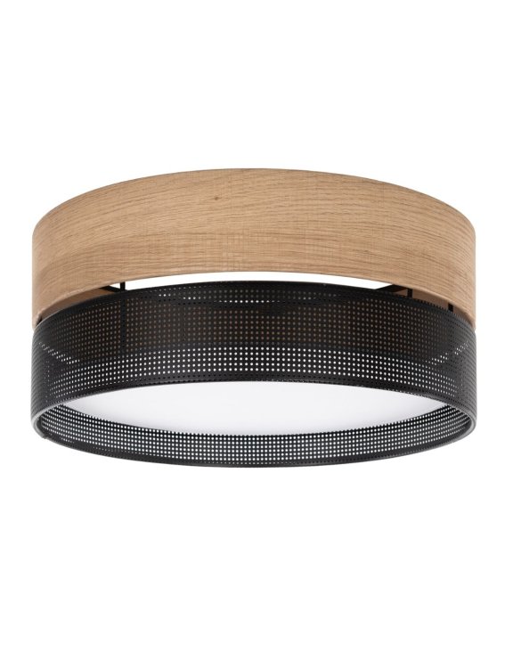 Stínidlo, vyrobené z modifikované dýhy a černé PVC fólie s perforací vytváří zajímavý vzor, který dodává světlu jedinečný vzhled.