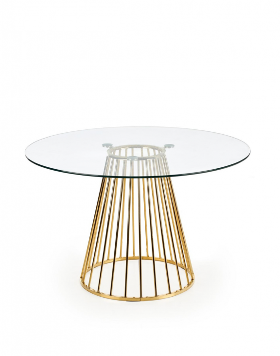 Základem stolu je kužel, který se skládá z několika zlatých trubek.