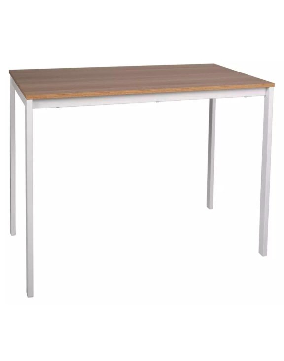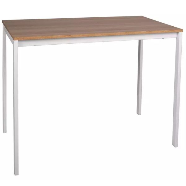 Jeho obdélníková deska o rozměrech 100x60 cm je vyrobena z laminované desky v elegantní barvě dub, která skvěle zapadne jak do moderních, tak i klasických interiérů.