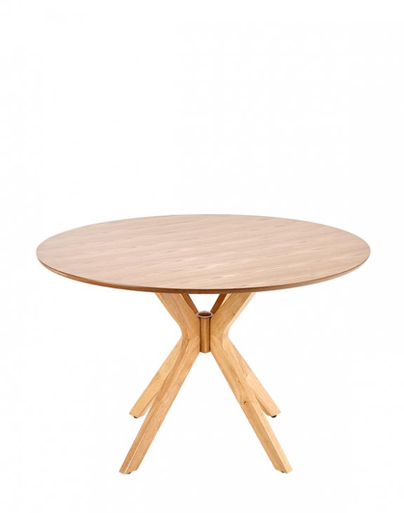 Deska stolu je vyrobena z MDF desky, dýhovaná v barvě přírodního dubu, má průměr 120 cm.