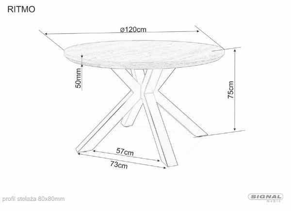 Průměr 120 cm umožňuje, aby u stolu Ritmo pohodlně zasedlo až 7 osob, což z něj činí perfektní volbu jak pro každodenní stolování, tak pro rodinná setkání.