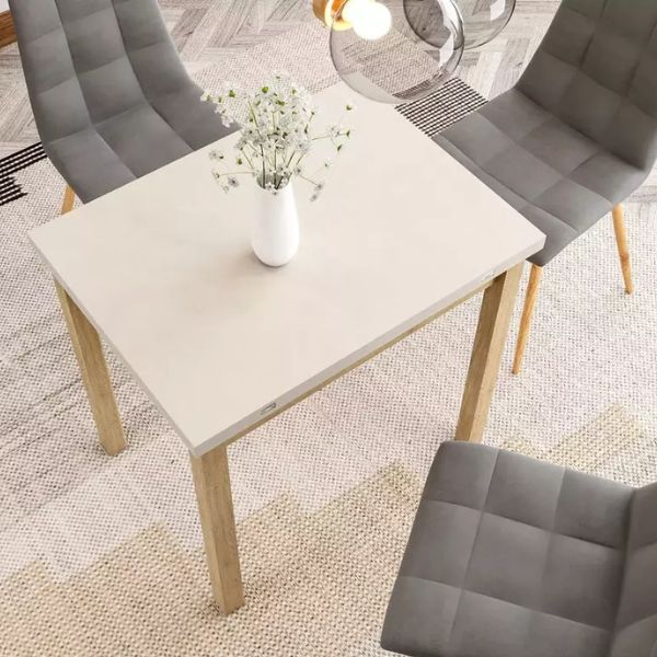 Díky inovativnímu rozkládacímu mechanismu se během chvilky změní z kompaktního stolu o rozměrech 80 × 80 cm na prostornou desku o délce 160 cm – ideální pro rodinná setkání, obědy nebo večery s přáteli.
