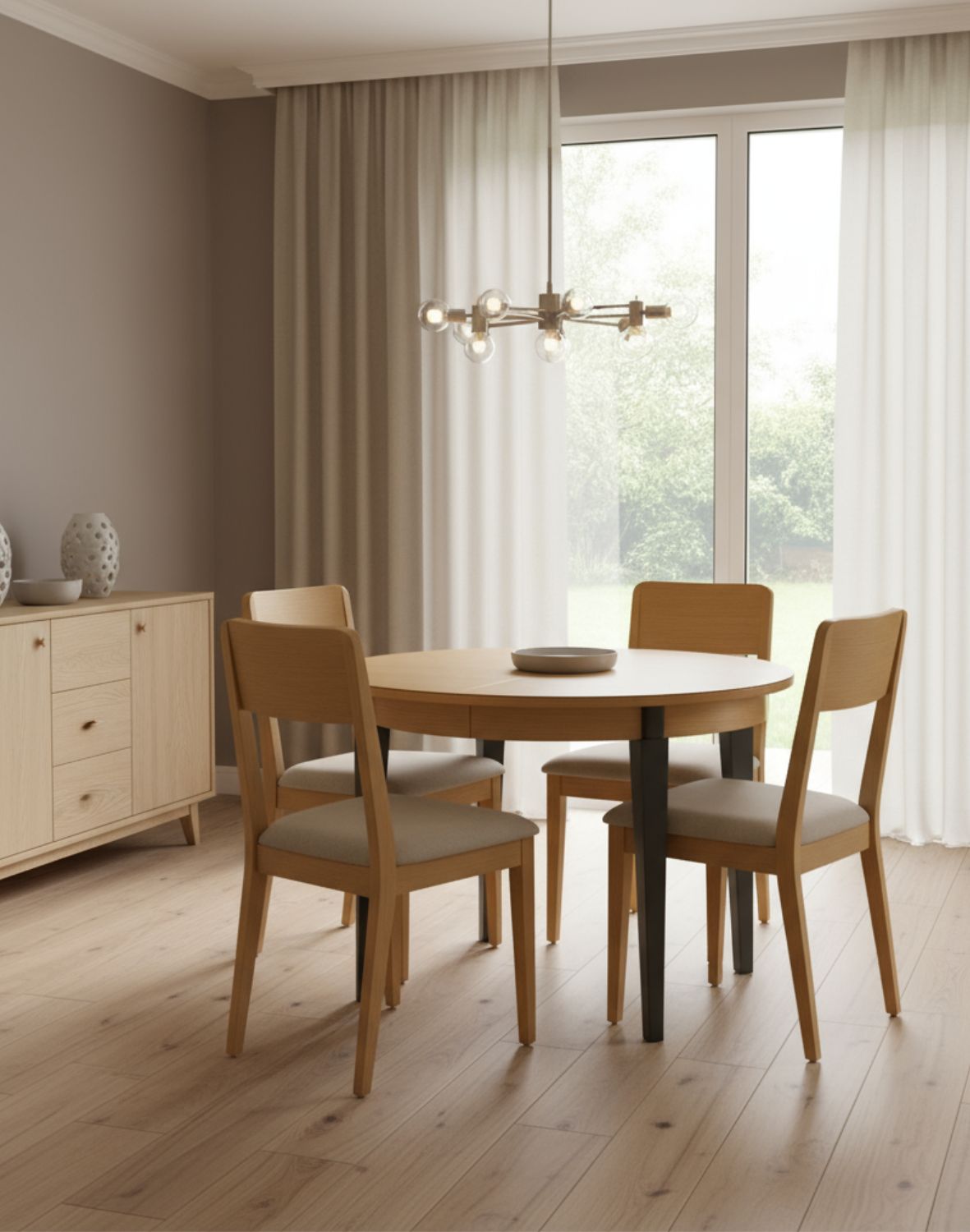 Bez rozložení se ke stolu pohodlně usadí 4 osoby. Po rozložení lze přidat další židle a vytvořit tak prostor pro větší společnost.