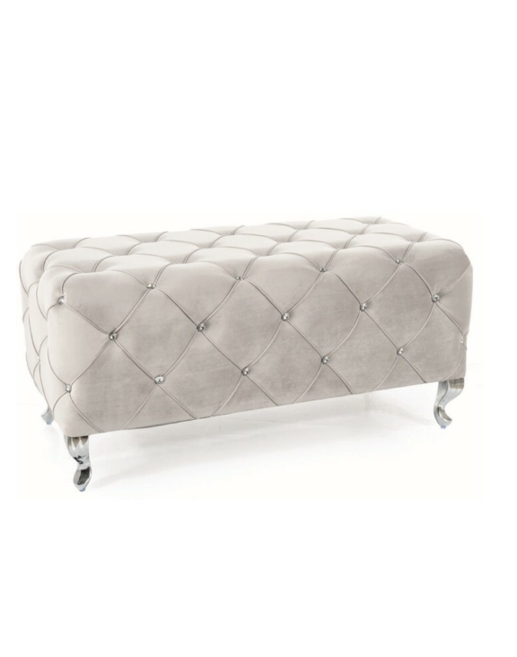 Stylové chromované nožky dodávají lehkost a eleganci, díky čemuž se taburet skvěle hodí do obývacího pokoje, předsíně, ložnice nebo šatny.