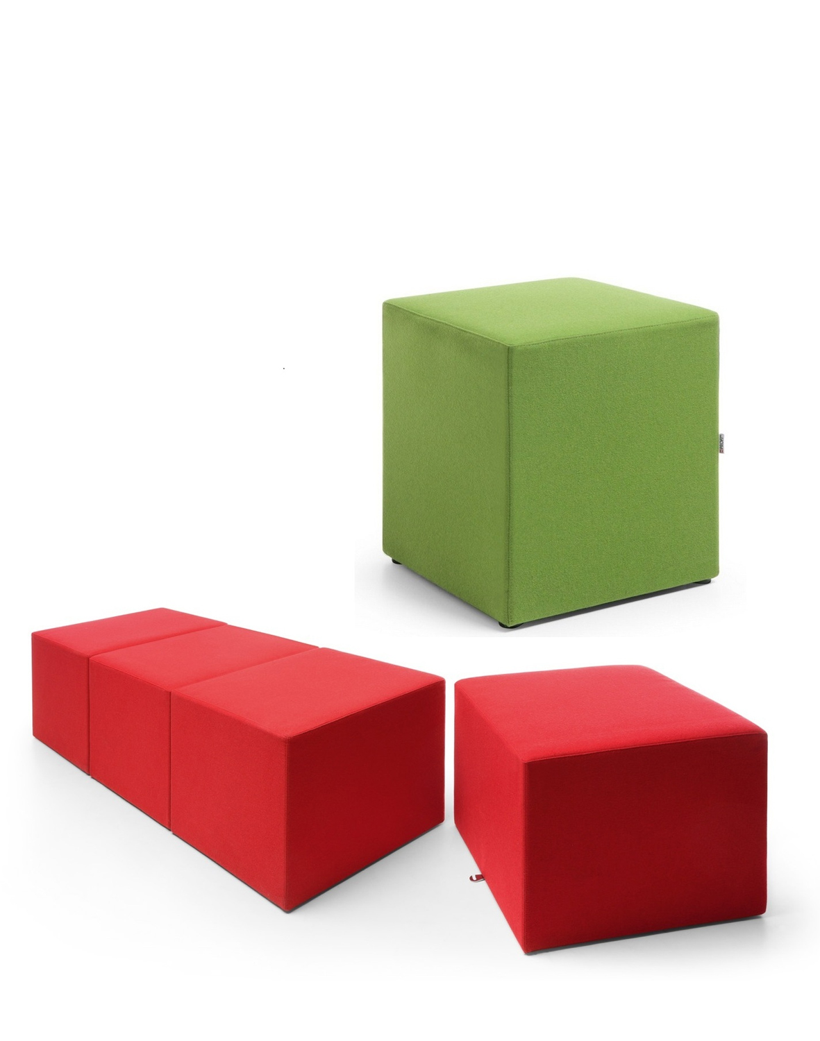 Taburet je čalouněný a k dispozici je několik kvalitních, odolných látek v široké škále barev – najdete je v sekci MATERIÁLY.