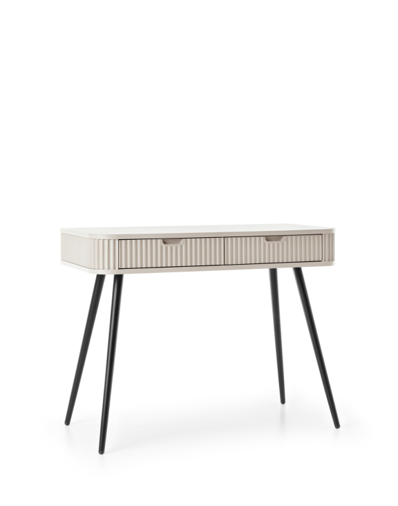 Toaletní stolek Zova (T103) značky Piaski je stylový a moderní kus nábytku s elegantním designem v barvě kašmíru a černými nohami.