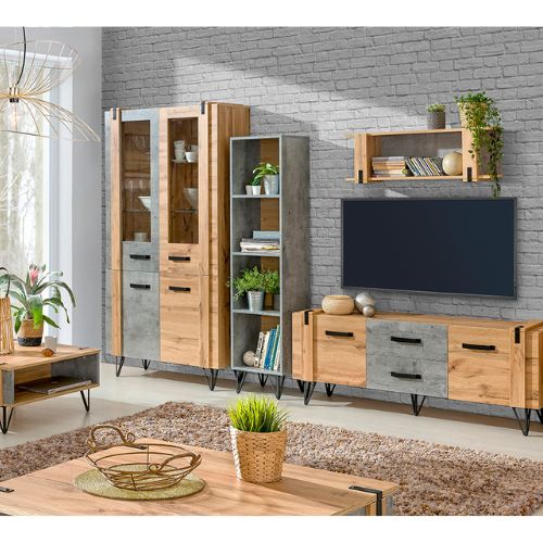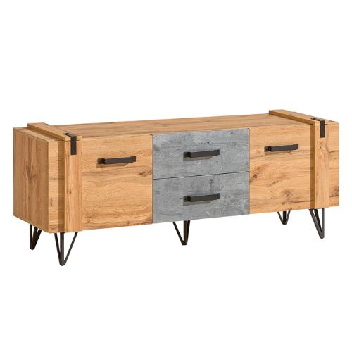 TV stolek Lofter LO7 je dokonalým spojením moderního designu a industriálního stylu. Jeho strohý tvar inspirovaný loftovým interiérem zaujme kontrastem teplého odstínu dubu a chladného betonu.