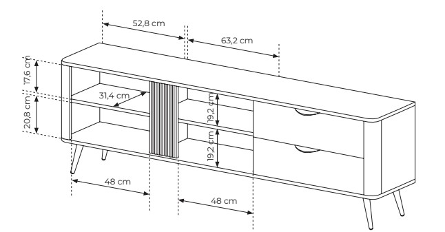 Moderní komoda Veris C 163 cm se šesti zásuvkami a ozdobnou rýhovanou lištou. Ideální do obývacího pokoje, ložnice nebo pracovny – elegance a funkčnost v jednom.