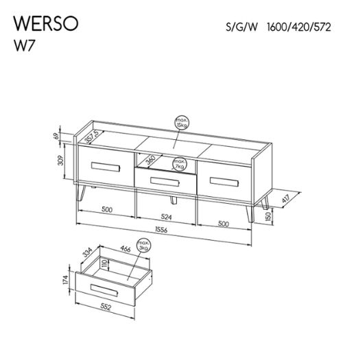 TV stolek Werso W7 vynikne samostatně, ale ještě lépe působí v kombinaci s dalšími prvky z kolekce Werso.