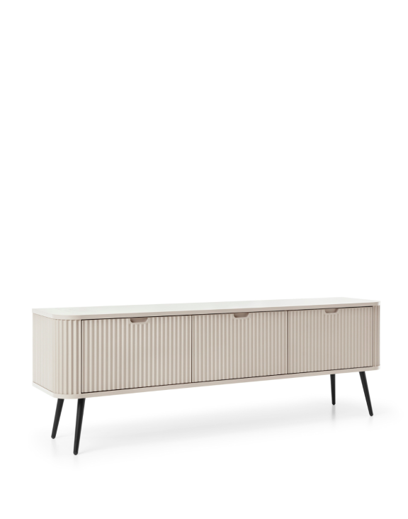 TV stolek Zova (RTV168) značky Piaski je stylový a moderní kus nábytku s elegantním designem v barvě kašmíru s černými nohami.