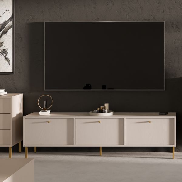 TV stolek Tokyo 2 v elegantním béžovém odstínu spojuje minimalistický design s funkčností a vnáší do interiéru klid, harmonii a přirozenou krásu.