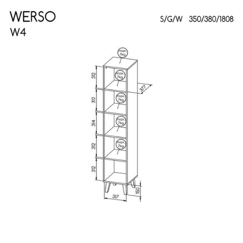 Úzká knihovna Werso W4 vynikne samostatně, ale ještě lépe se bude vyjímat v kombinaci s dalšími prvky z kolekce Werso.