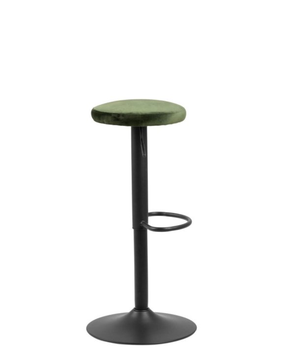 Barová stolička Finch značky Actona je designové a funkční sedátko, které se vyznačuje industriálním stylem v zeleném odstínu (sametová látka Vic).