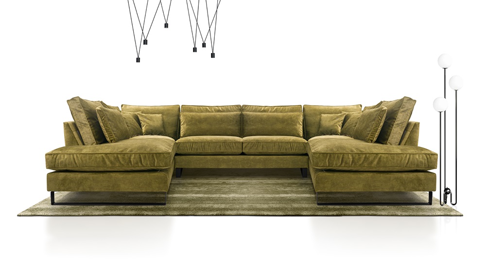 Rohová sedací souprava Corblack je moderní kus nábytku ve tvaru písmene U, ideální do prostorných interiérů a loftových apartmánů.