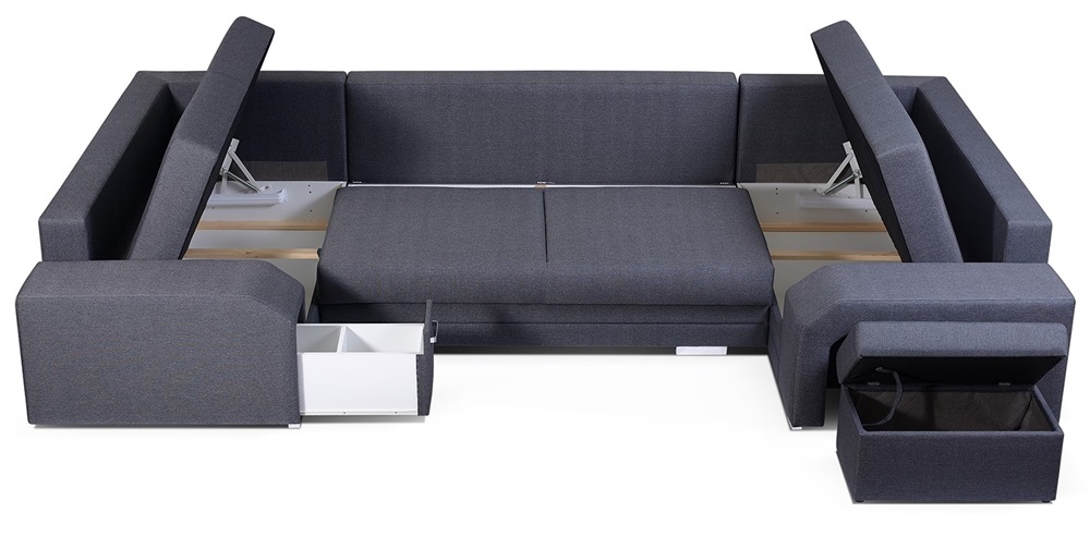 Disponuje 4 úložnými prostory: dva velké v otomanech, jeden menší skrytý v taburetu a nejmenší v zásuvce umístěné v područce, což poskytuje dostatek místa pro uschování věcí.